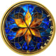 Auf der Rückseite entfaltet sich eine filigrane florale Komposition. Goldene Blütenblätter scheinen förmlich aus dem tiefblauen Hintergrund herauszuwachsen. Die kunstvolle Anordnung erinnert an historische Kirchenfenster und verleiht der Münze eine spirituelle Dimension.