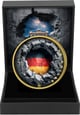 Die vollflächige Vergoldung verleiht dieser 1-Unze-Silbermünze eine majestätische Ausstrahlung. Besonders beeindruckend: Die hochwertige Colorierung zeigt das weltberühmte Brandenburger Tor, umrahmt von einem spektakulären Feuerwerk. Auf der Rückseite prangt stolz die deutsche Flagge – ein Symbol der Einheit und Freiheit.