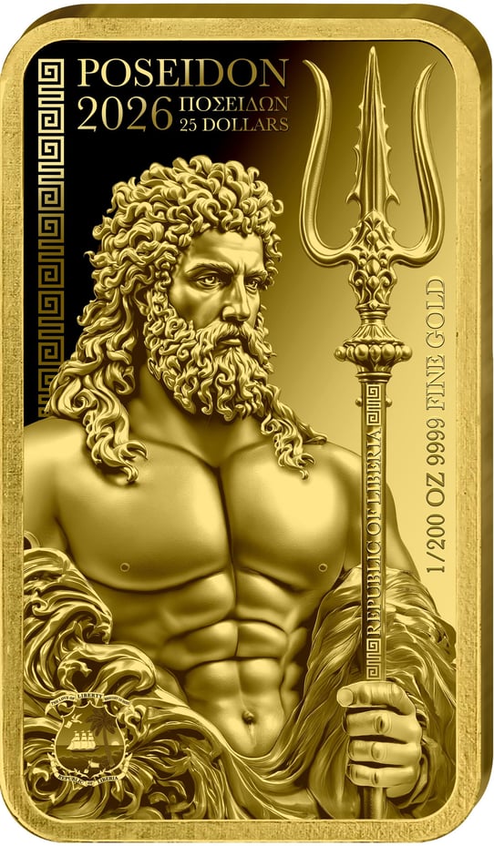 Diese spektakuläre Serie widmet sich den mächtigsten Gottheiten der griechischen Mythologie. Nach Zeus und anderen olympischen Göttern ehrt nun Poseidon die Sammlung. Jede Ausgabe dieser Serie hat sich als begehrtes Sammlerobjekt etabliert. Die Kombination aus mythologischem Motiv, winziger Größe und sehr niedriger Auflage schafft eine explosive Mischung für potentielle Wertsteigerungen.