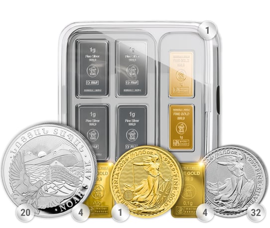 • 320,63 g Feingewicht aus Gold & Silber – kleine Stückelungen für maximale Flexibilität im Krisenfall