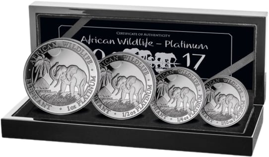 Platin Set: 1/10 – 1 Unze Somalia Elefant 2017 (im Etui)