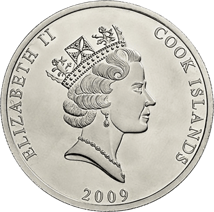 Die Cook Islands ist eine Münze, die in Deutschland geprägt, aber von den Cook Islands herausgegeben wird. Die Cook Islands sind eine kleine Inselgruppe im südlichen Pazifik. Als Motiv ist vorne das berühmte Segelschiff „Bounty“ und hinten das Porträt der Queen abgebildet.
