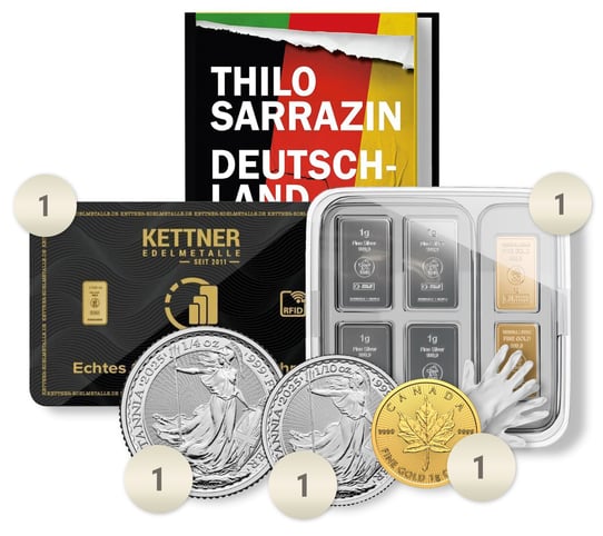 Das Paket setzt sich aus einer Vielzahl von Edelmetallen und Stückelungen zusammen, um Ihnen maximale Flexibilität und Sicherheit und Inflationsschutz zu bieten:
